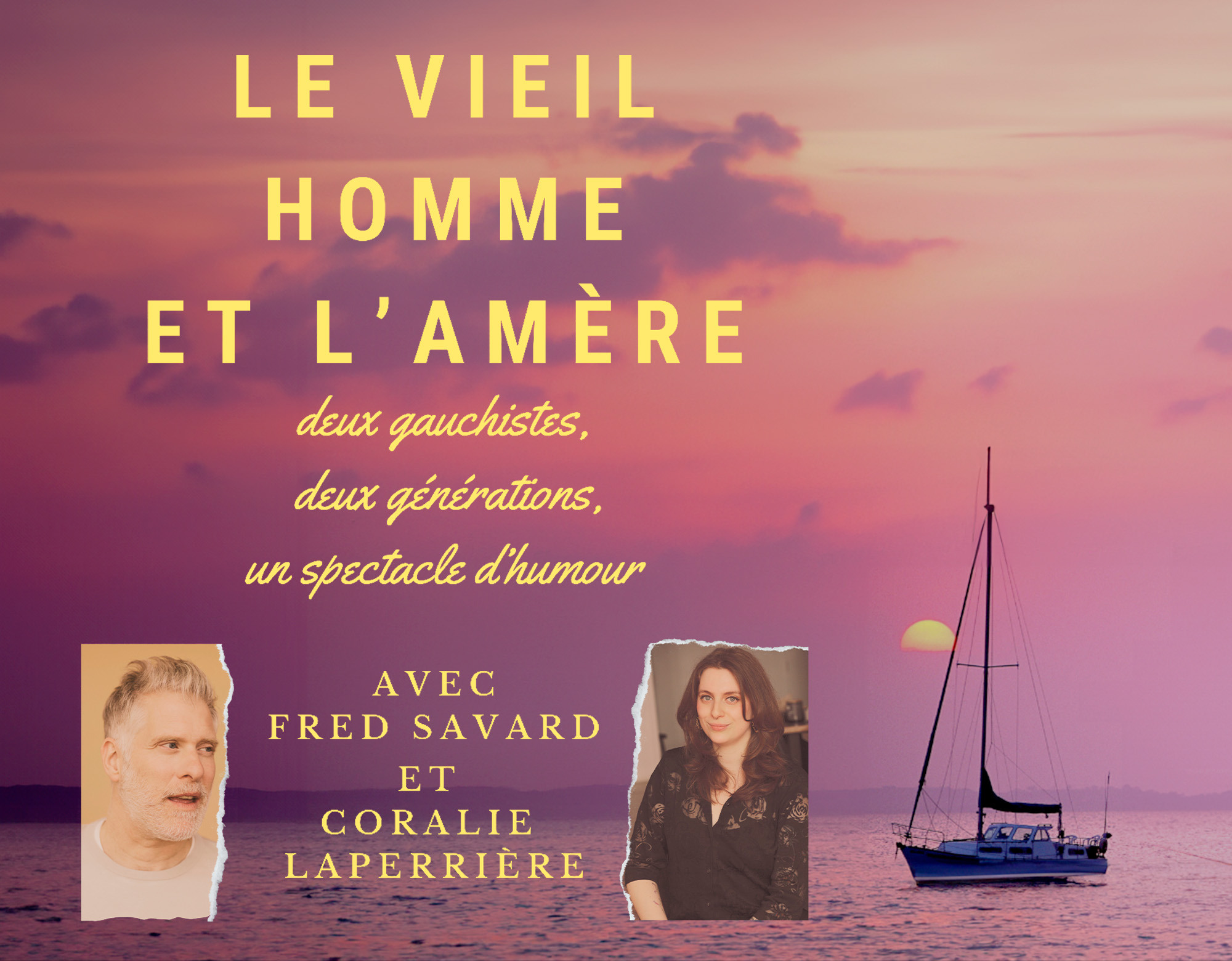 Le Vieil Homme et l’Amère est un spectacle qui expose la vision unique (et franchement à gauche) de ce duo explosif d'humoristes qui abordent par le rire des enjeux cruciaux contemporains : Intelligence artificielle, pilosité féminine; montée de l’extrême-droite, etc. Le Vieil Homme et l’Amère, c’est une conversation intergénérationnelle entre deux humoristes que 25 ans séparent!